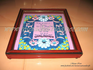 This frame work is a gift to my friend who is leaving our company for better opportunities so thought I could do it which would give some positive thoughts.. Since I dint have much time I planned to do few quilled flowers but at the same time it should be attractive... I gathered this quote from Rajni Chawla's quilled works.. For the letters I first wrote it using blue refill pen and upon that lined with light blue 3D glitter to give the sparkling effect.